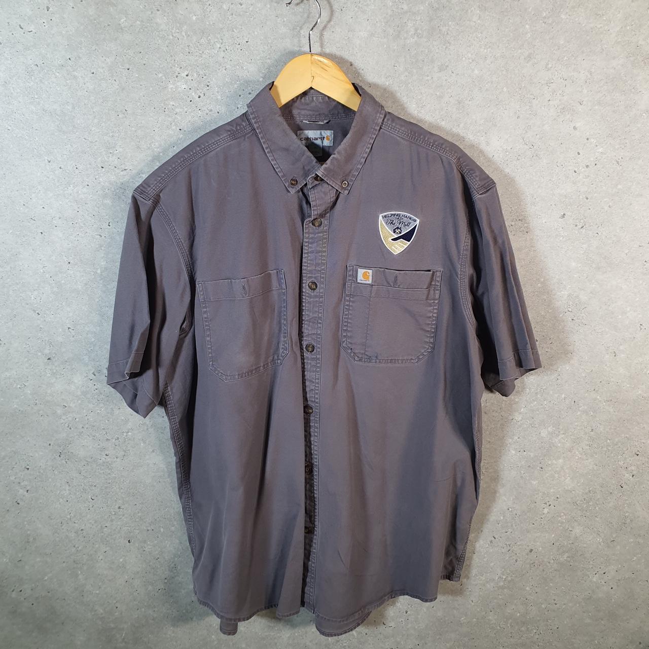Vintage Carhartt Shirt Button Down Mens XL Grey Short Sleeve Chore Utility Relaxed