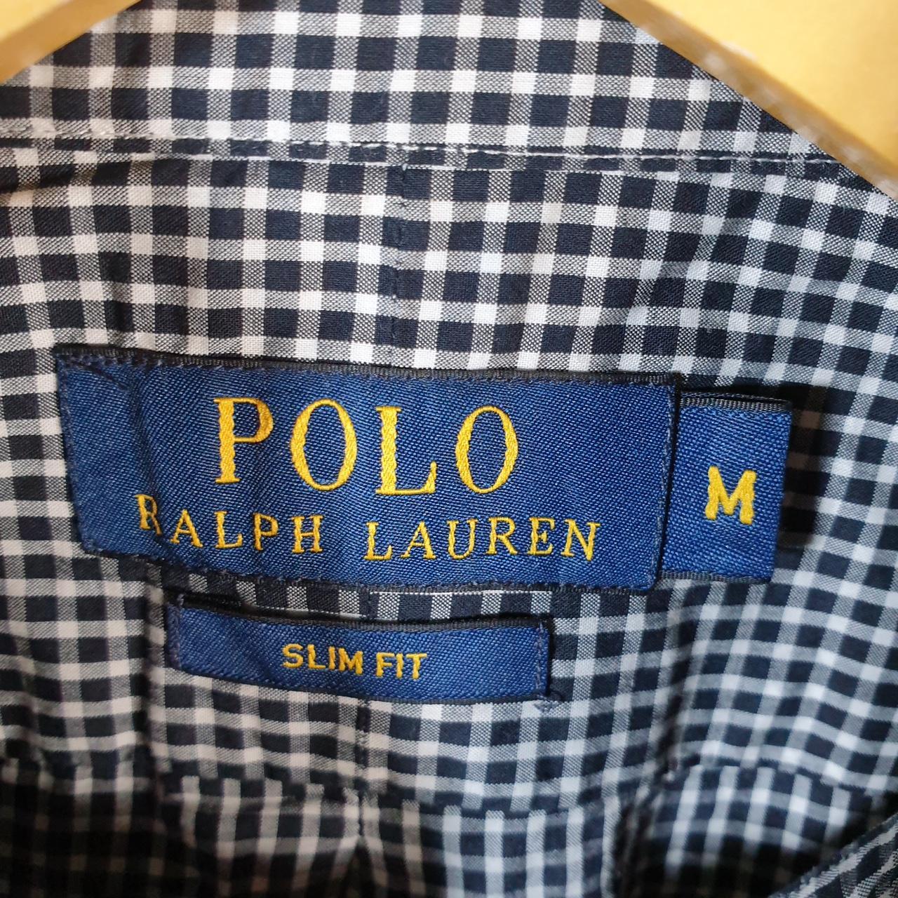 Vintage Ralph Lauren Button Down Shirt Men’s Medium Grey Checkered Slim Fit Cotton Pony